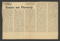 Przyjechałem do Florencji już po występach Teatru Studio, zresztą z innej okazji. Mogłem tylko posłuchać ech sukcesu Dantego Szajny na tegorocznych Rassegna Internationale dei Teatri Stabili, co tłumaczy się mniej więcej na Międzynarodowy Festiwal Teatrów Stałych. Przymiotnik stały — polskiemu czytelnikowi może wydać się niepotrzebny, idzie tu jednak o teatry ustabilizowane w instytucje w przeciwieństwie do zmiennych zespołów, których mnóstwo działa na Zachodzie. Słuchałem więc ech, ale przywiozłem też dokumentację bardziej konkretną: jedenaście recenzji w dziennikach z całych Włoch (na prasę periodyczną trzeba jeszcze poczekać). Recenzje są — jak na naszą praktykę — w rozmiarach ogromne, do tego sążniste tytuły na pięć szpalt, obszerne „główki” wybijające główne myśli, często fotografie. Takie są widocznie zwyczaje w prasie włoskiej. A może dlatego, że uznano Dantego za wydarzenie specjalne.